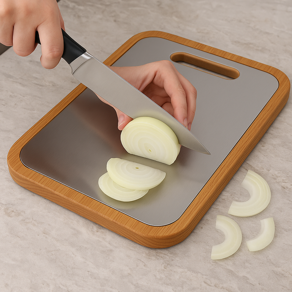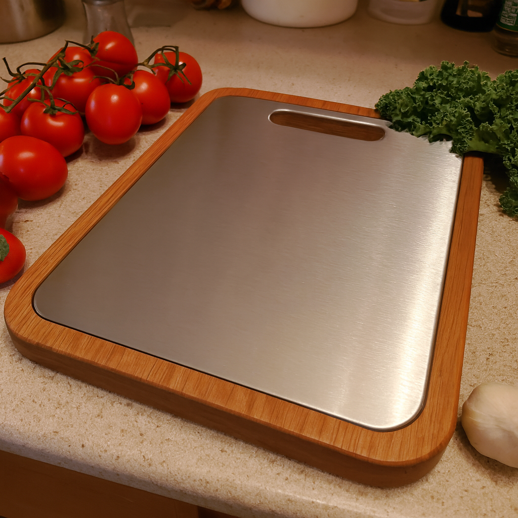 Fera™ Bufolo paslanmaz çelik kesme tahtası, mutfağınız için sadece bir yardımcı değil, sağlıklı, hijyenik ve uzun ömürlü bir yaşam tarzının anahtarıdır. Ahşap çerçevesiyle estetiği, çelik yüzeyiyle dayanıklılığı bir araya getirerek yemek hazırlıklarını keyifli ve güvenli hale getirir.