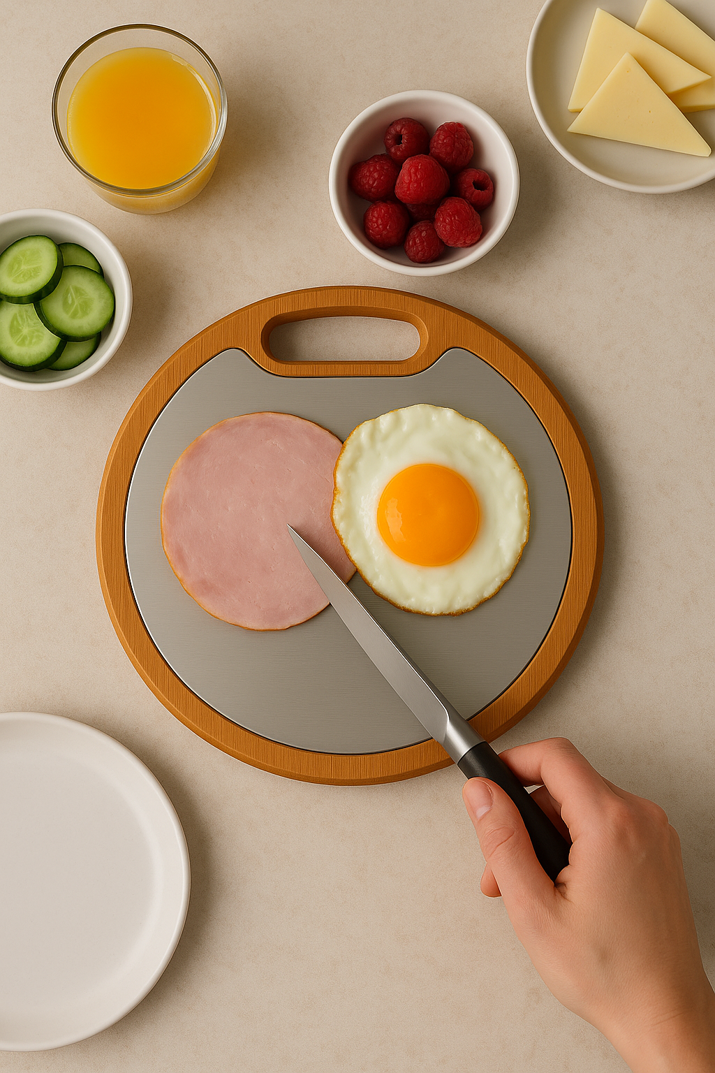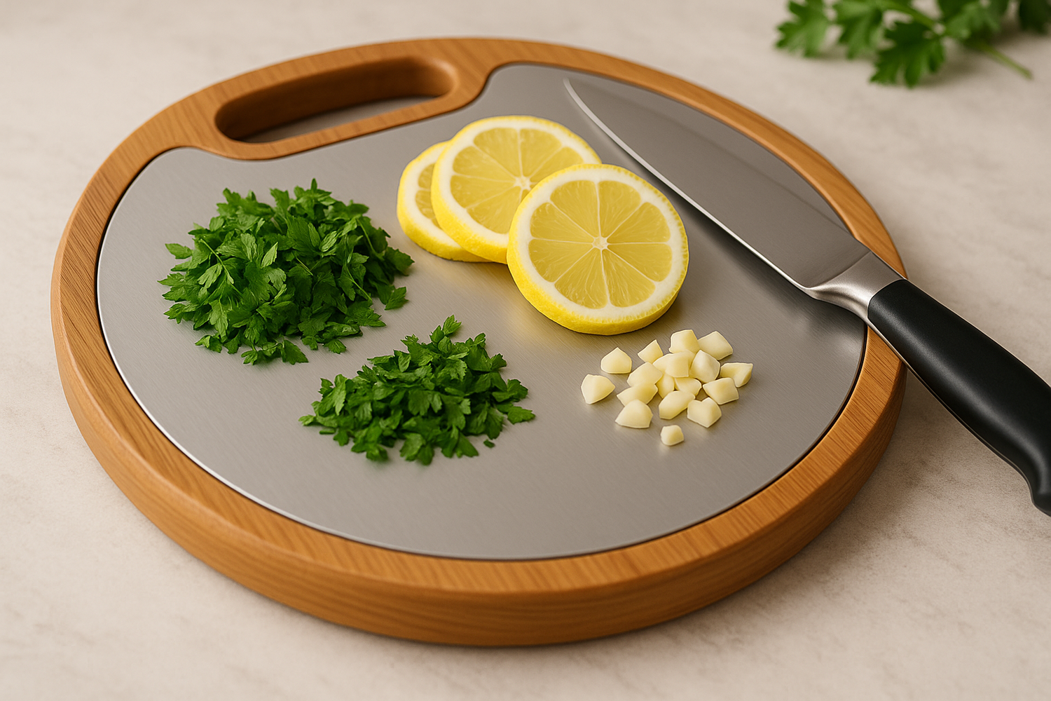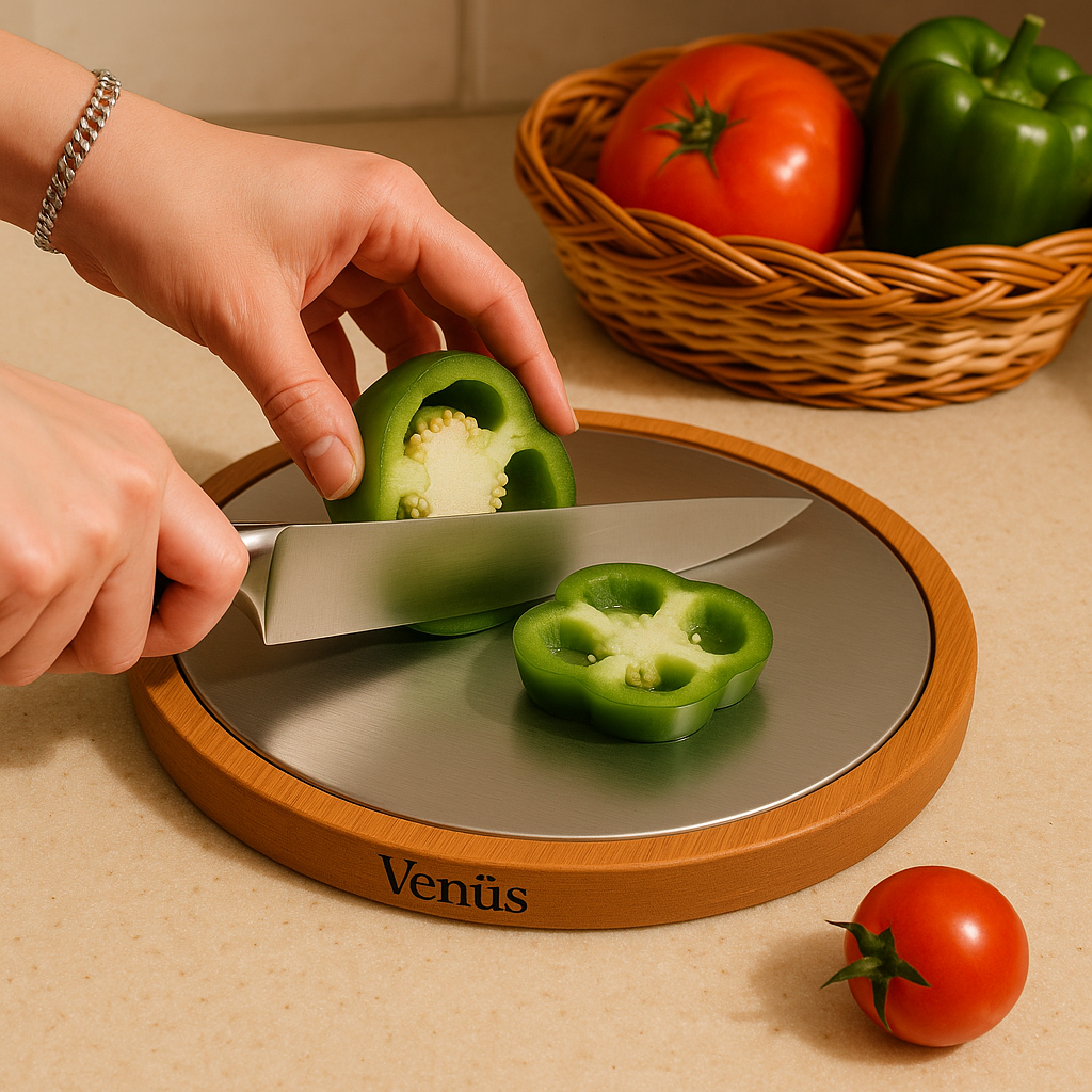 Fera™ Venüs paslanmaz çelik kesme tahtası, mutfağınız için sadece bir yardımcı değil, sağlıklı, hijyenik ve uzun ömürlü bir yaşam tarzının anahtarıdır. Ahşap çerçevesiyle estetiği, çelik yüzeyiyle dayanıklılığı bir araya getirerek yemek hazırlıklarını keyifli ve güvenli hale getirir.
